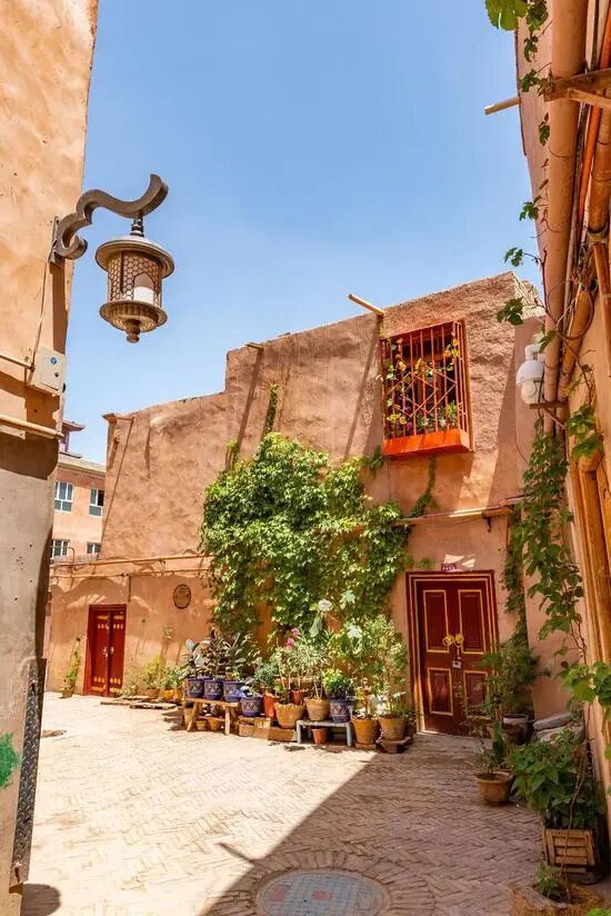 喀什老城内街巷纵横交错,布局灵活多变,曲径通幽,老城的居民们仍然恪守着世代而居的土屋和上千年的传统习俗。