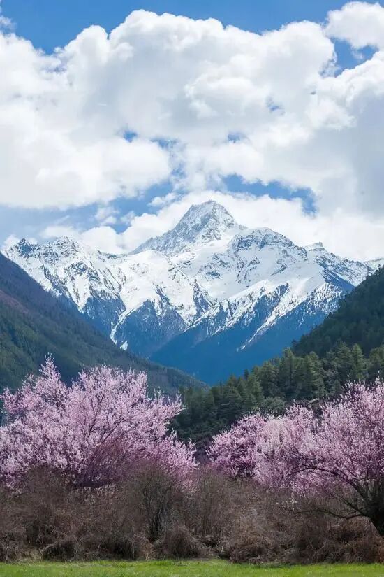 春天的林芝注定是惊艳的,漫山的桃花,在雪山之下,构成了一幅绝美的画卷。