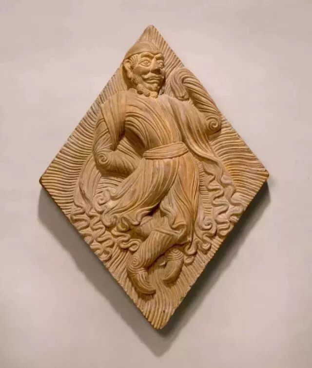 ▲舞人浮雕砖 河南安阳修定寺唐塔出土 唐 高54.6厘米,宽12.7厘米,厚9.5厘米