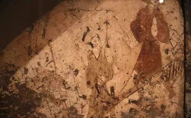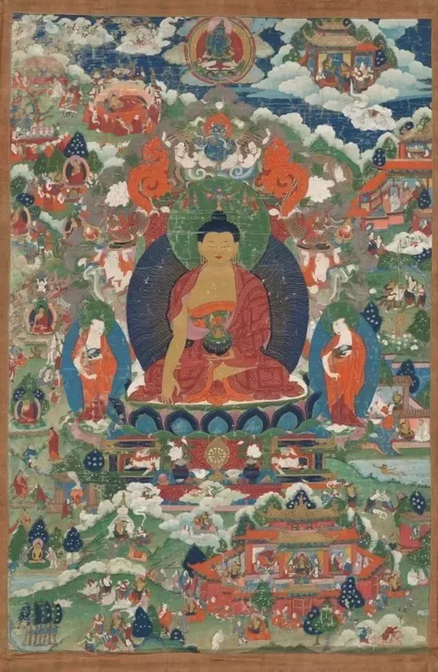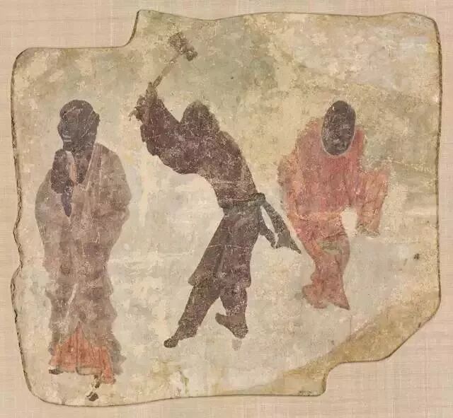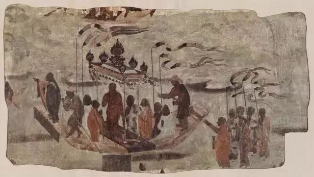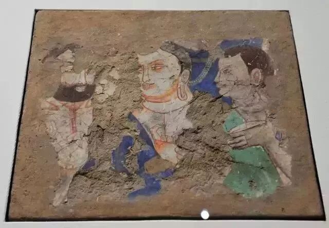 ▲佛祖与弟子彩绘壁画 新疆公元4-5世纪 23.2 x 26.7 cm