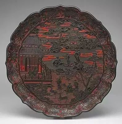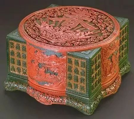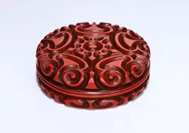 ▲剔红漆盒 明,约公元15~16世纪 高4.8厘米,直径14.6厘米