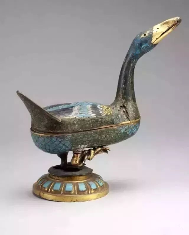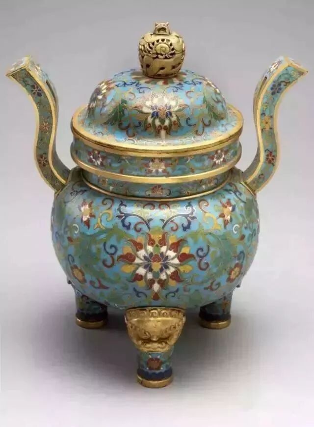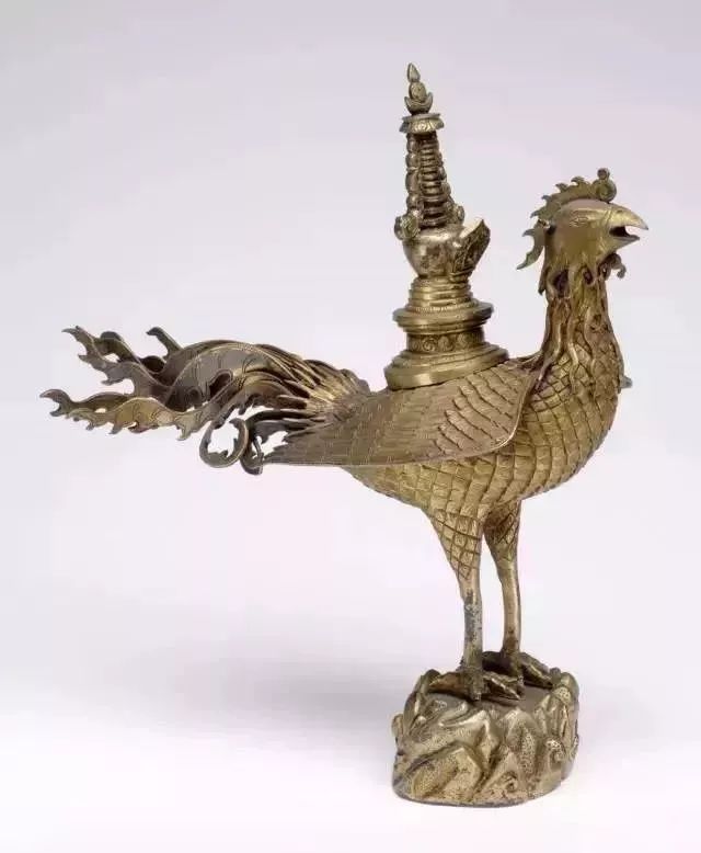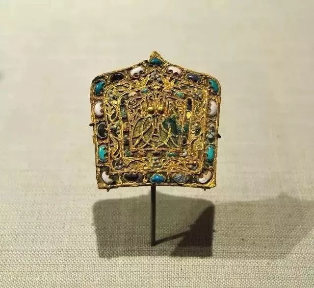 ▲镶嵌绿松石、白珊瑚、青金石镀金铜饰 高7cm