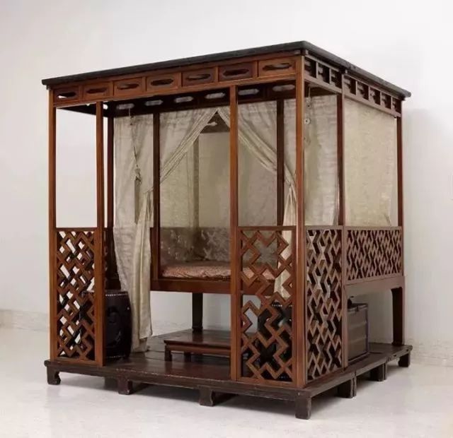 ▲黄花梨拔步床 明,公元16世纪 长219.1厘米,宽214厘米,高231.14厘米