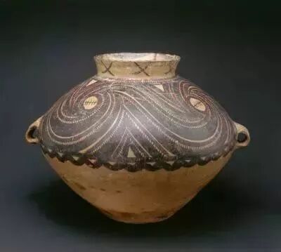 ▲马家窑文化彩陶漩涡纹双耳罐 新石器时代,约公元前2600~2300年 高19.4厘米,直径35.88厘米