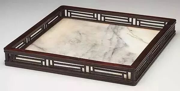 ▲明-清 紫檀大理石文房盘3.8 x 30.6 x 30.8 cm