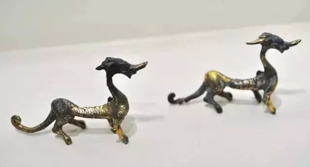▲鎏金龙形铜饰 唐代 长10.2cm