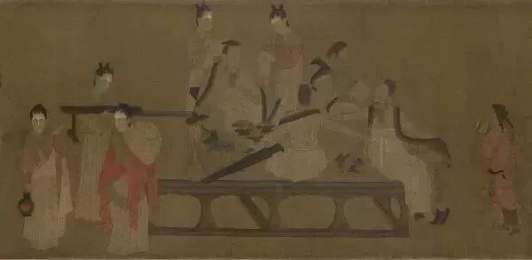 ▲捣练图 传张萱,宋徽宗摹本 北宋,约公元12世纪初 纵37厘米横145.3厘米