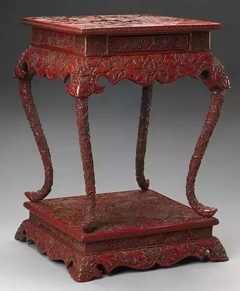 ▲雍正 桌面小剔红香几 42.55 x 29.85 x 29.85 cm