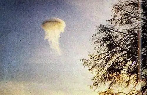 1974年11月17日早晨,劳尔森带着他的爱犬在丹麦日德兰半岛散步,突然看到一团白云里裹着一个外形奇特的物体。他在距离这个物体飞到大约250到300米远的地方时拍下了这张照片。