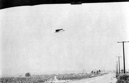 1951年11月23日,盖伊・马坤德在美国加利福尼亚州河滨附近的山路上拍到这张照片。他表示,地平线上方的物体是个“飞碟”。
