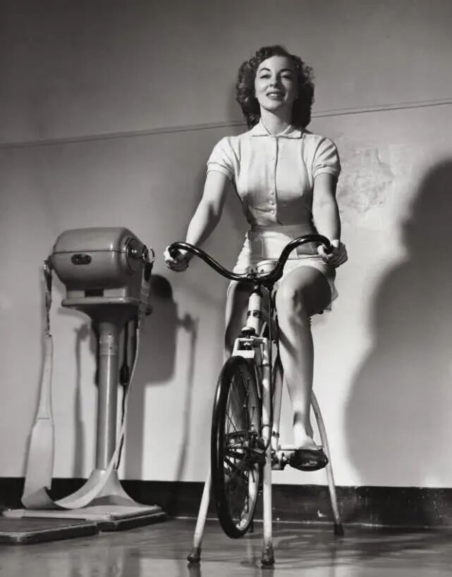 1922年,荷美瑞克(Homeric)班轮上的健身房里,运动自行车上的妇女