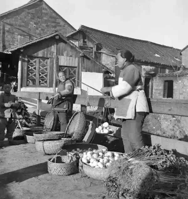 民国时期,南京,秦淮河某桥上卖菜老妇。