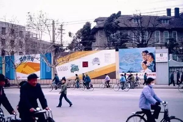 1980年代,鼓楼广场前,文明礼貌宣传站。