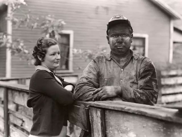 1938年,美国西弗吉尼亚州,一名妇女与一名煤炭工人合影照。安东尼·斯图尔特/摄。