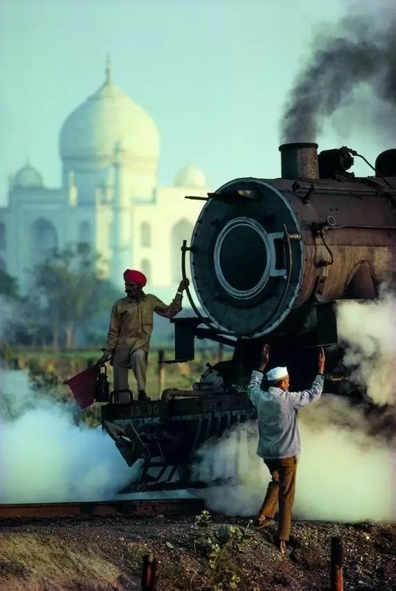 印度,泰姬陵与开往阿格拉堡站的火车。史蒂夫· 麦凯瑞/摄。