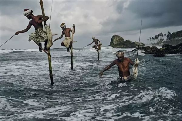 渔民坐在固定在海底的柱子上钓鱼,一次就要待上两三个小时。史蒂夫·麦凯瑞/摄。