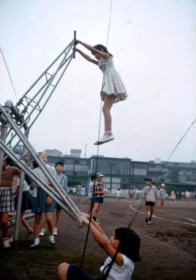 1964年,日本东京,一座学校里的学生在玩站立式跷跷板。