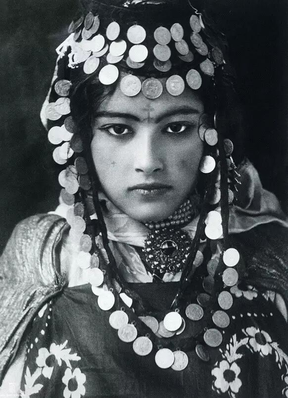 一位阿尔及利亚山区乌列奈尔部落女孩,她在法属北部非洲那些拥挤的咖啡馆里表演肚皮舞谋生。鲁道夫· 莱纳特/摄。