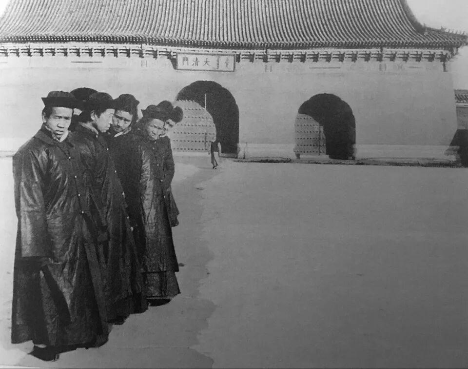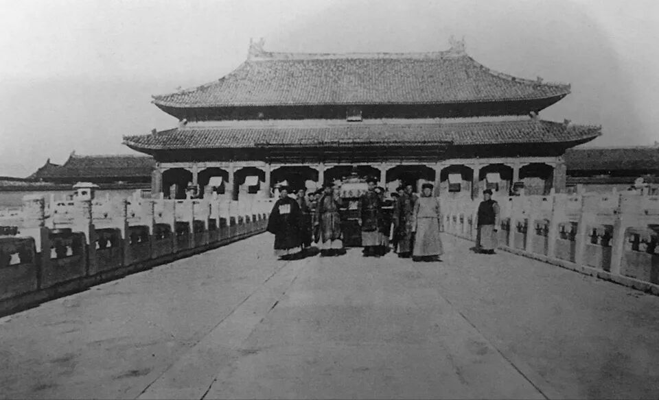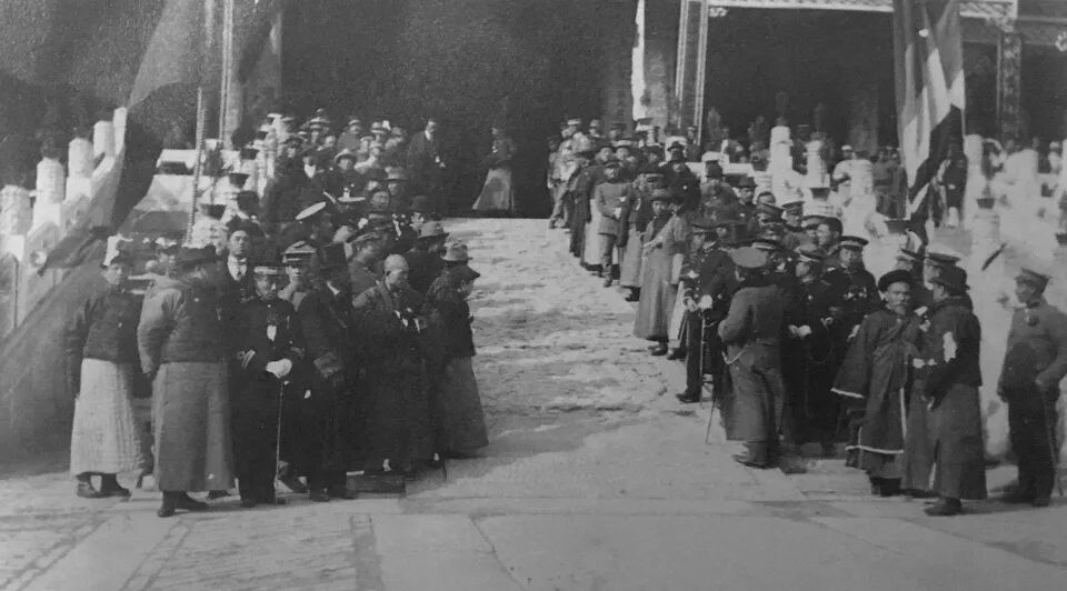 末代皇帝溥仪登基现场,晚清最后一批大臣们,正在太和殿门前。