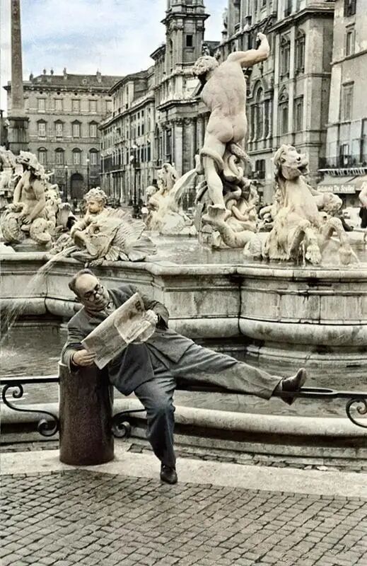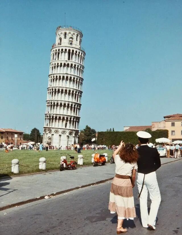 上世纪六十年代的意大利人,一家人都坐在电瓶车上,嬉笑颜开,貌似生活十分惬意。