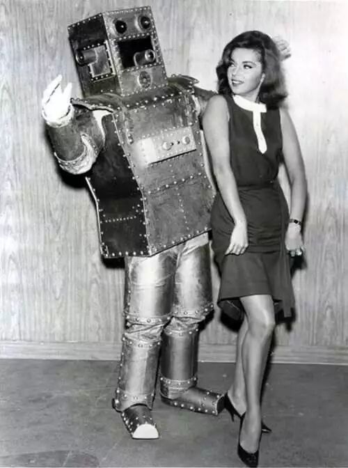 1950年代,美国一名专业飞刀手用她的孩子作为道具,表演特技。