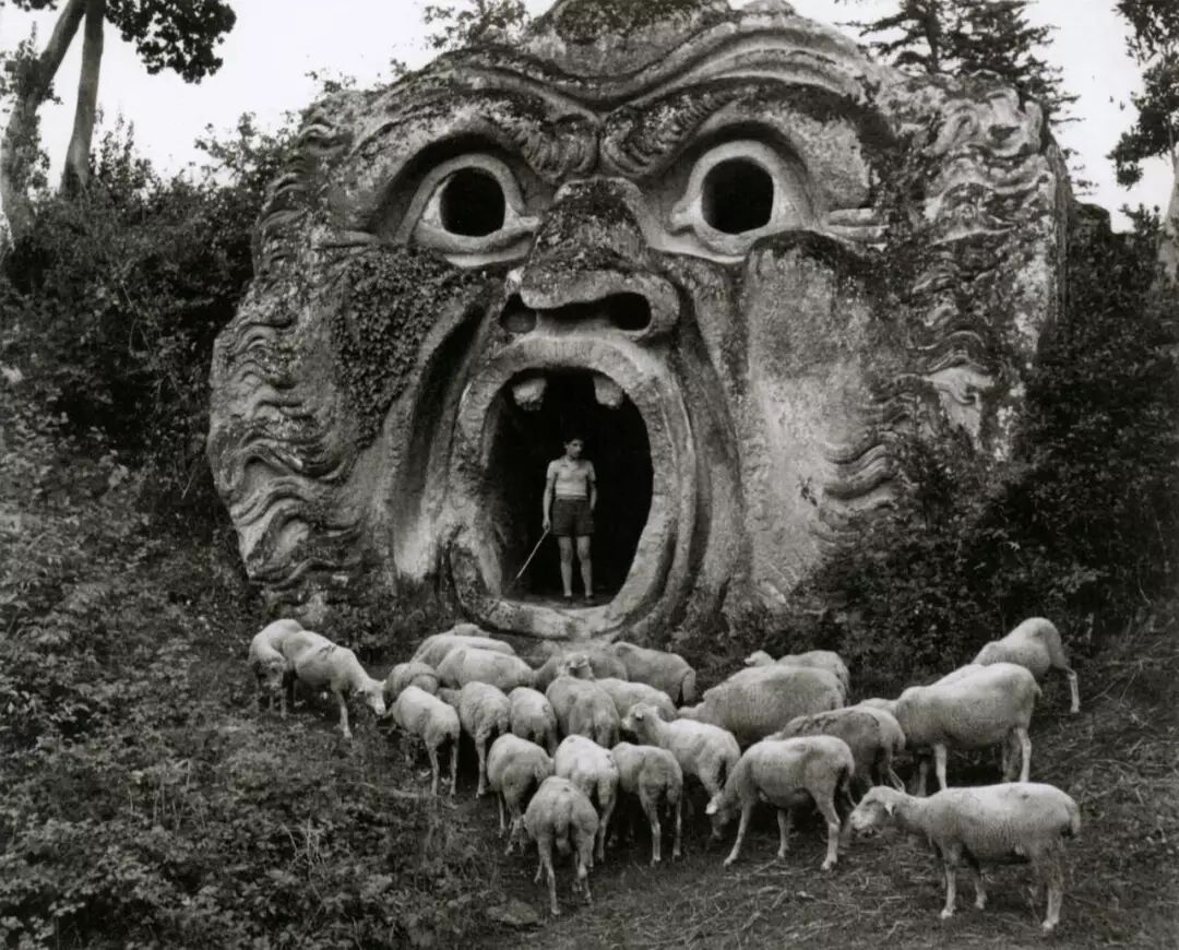 1952年,这位女子在意大利博马尔佐的奥尔西尼宫废弃公园放养她的羊群。