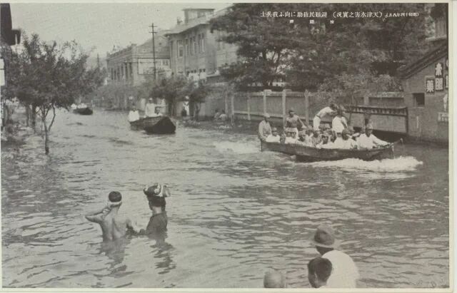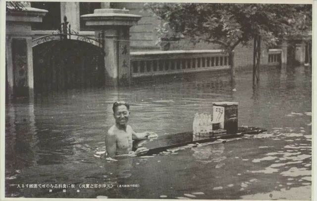 1939年8月,华北地区普降暴雨,海河上游和天津市内多处河道水势猛涨,洪水汇成一片。1939年8月20日,陈塘庄大埝崩决,海河以南地区成为泽国。8月21日洪水进入天津市区,小刘庄、谦德庄和佟楼等地相继被洪水淹没。此后,天津市区百分之八十的地区被洪水所淹,大部分地区被洪水浸泡长达一个半月之久,天津的陆路交通和工商业濒临瘫痪,造成直接经济损失法币约6亿元。