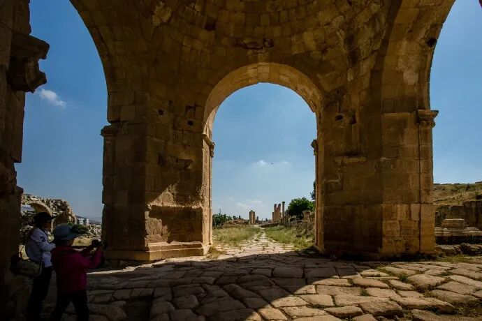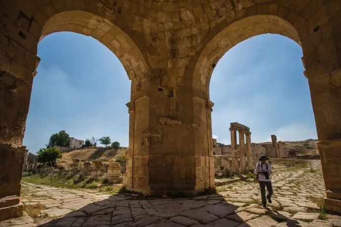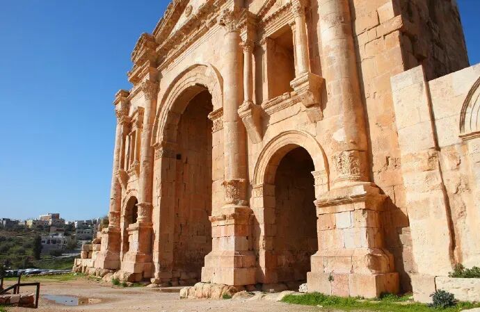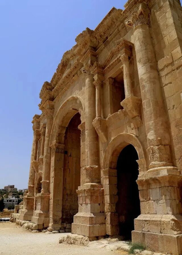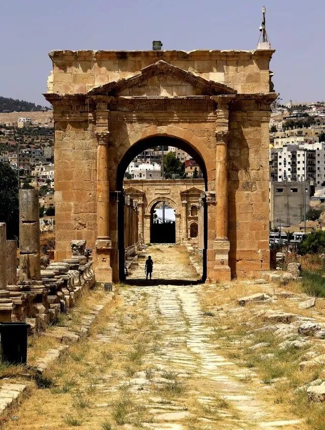 公元129年,为迎接这位哈德良皇帝来访,杰拉什人专门在城市最南端兴建了这座雄伟的凯旋门,命名为“哈德良凯旋门”。