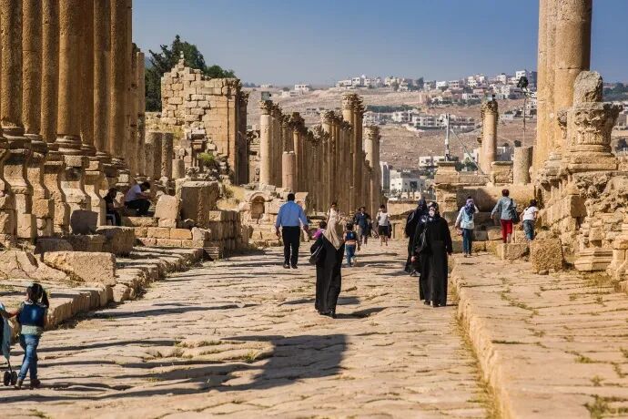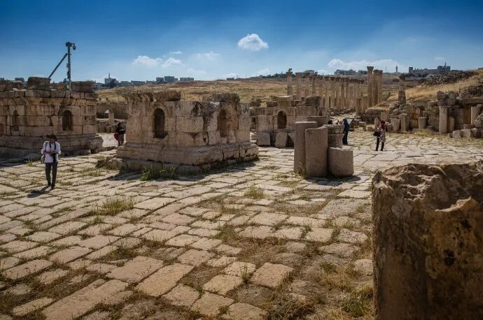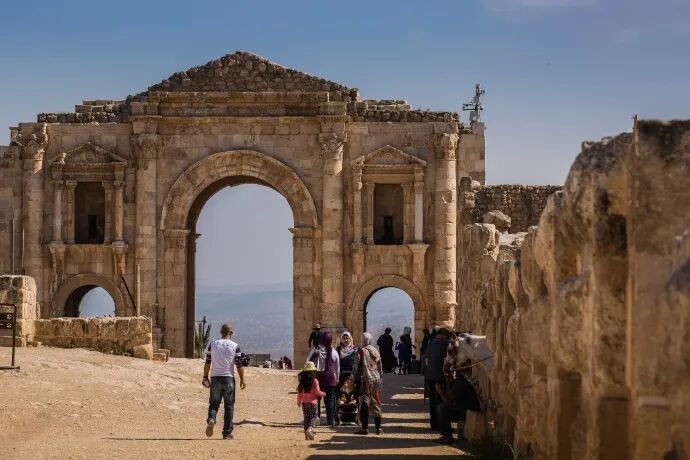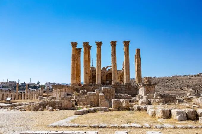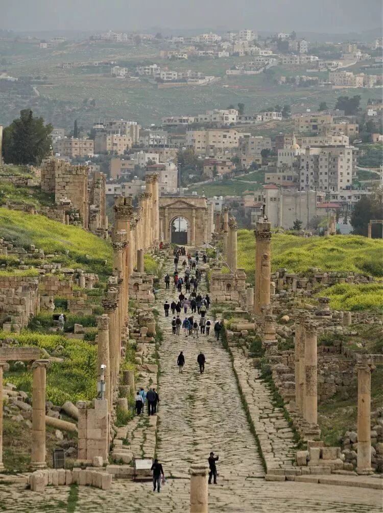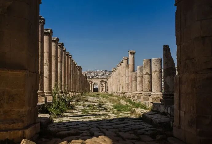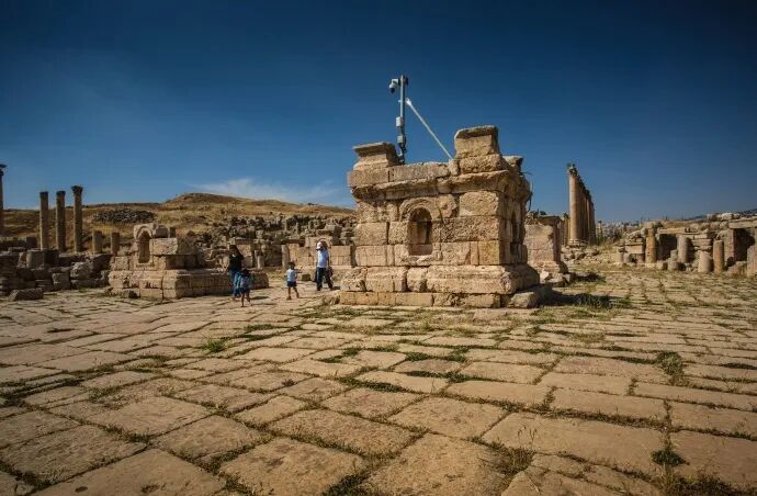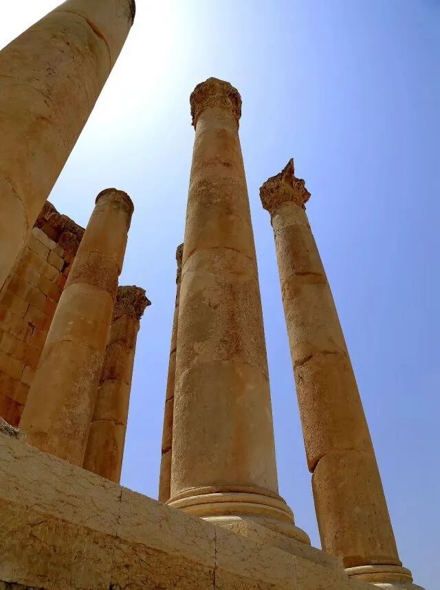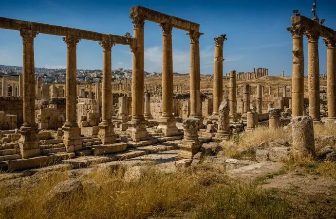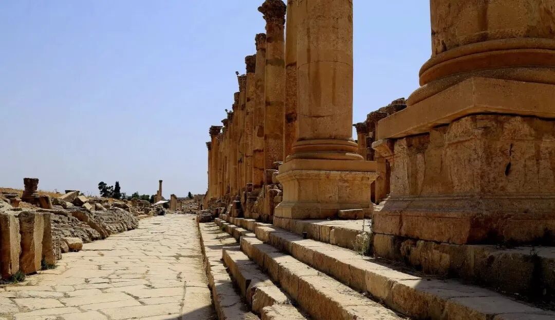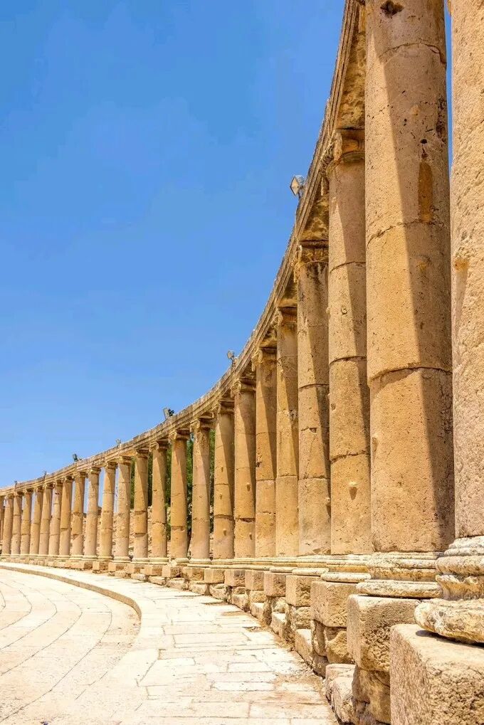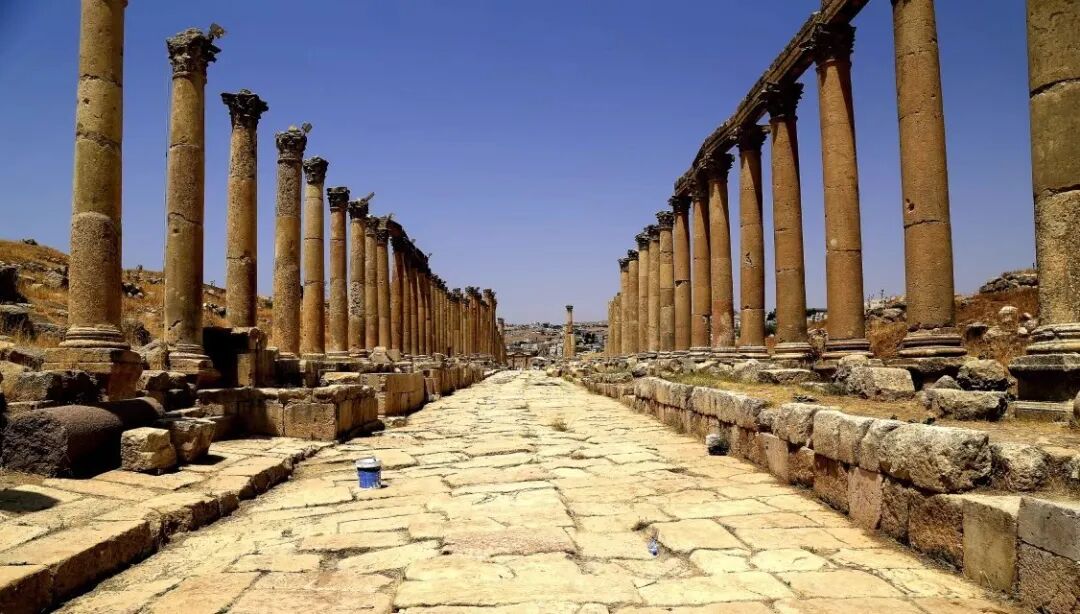 杰拉什古城(首都安曼旁)是世界上保存最完好、规模最大的古罗马城市遗址之一,也称“中东的庞贝古城”、“罗马外的罗马”,它是西元前64年时庞贝在此原城区基础上建成了古罗马十大重要城市之一,后因拜占庭兴起与波斯人入侵,以及商道变迁而逐渐衰弱竟淹没在黄沙中。1806年杰拉什才被德国人重新考古发现。