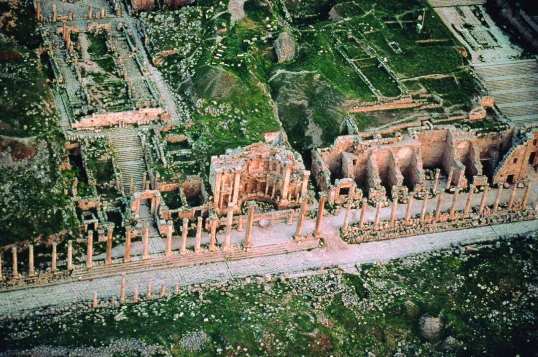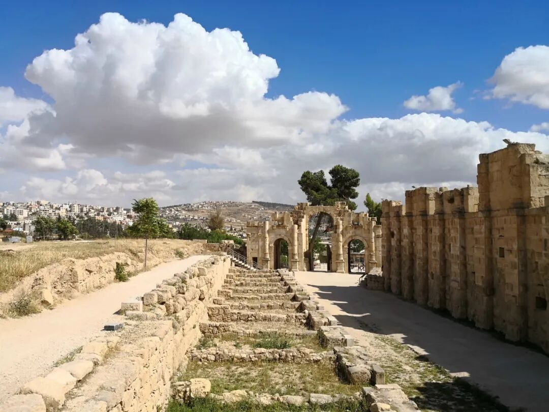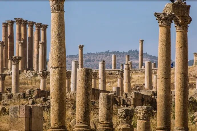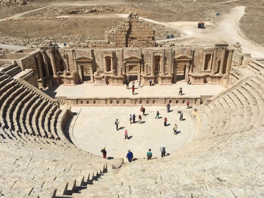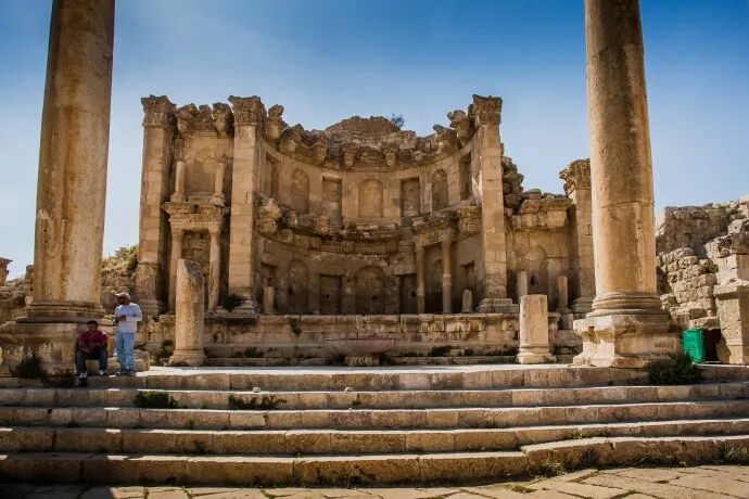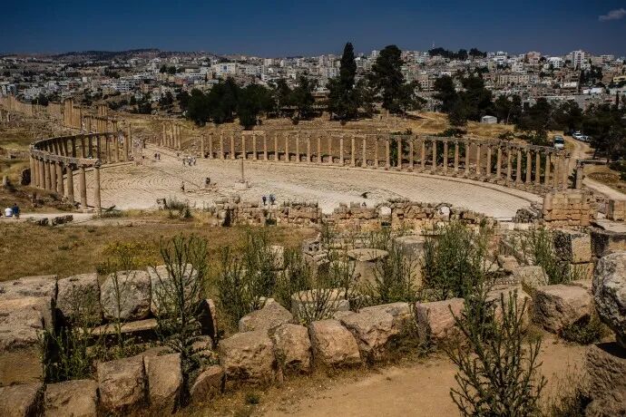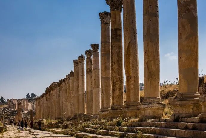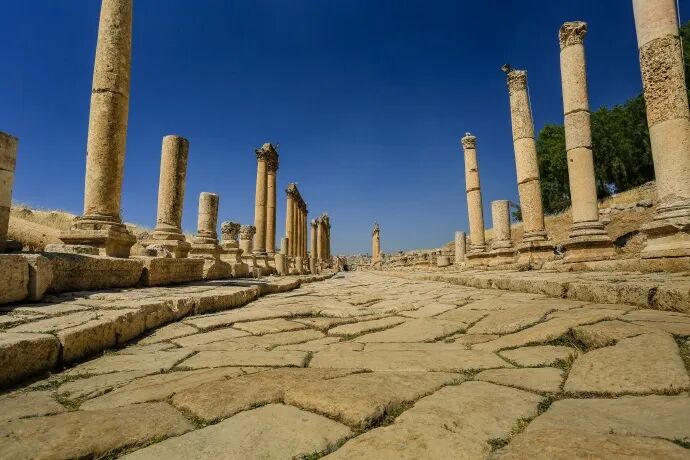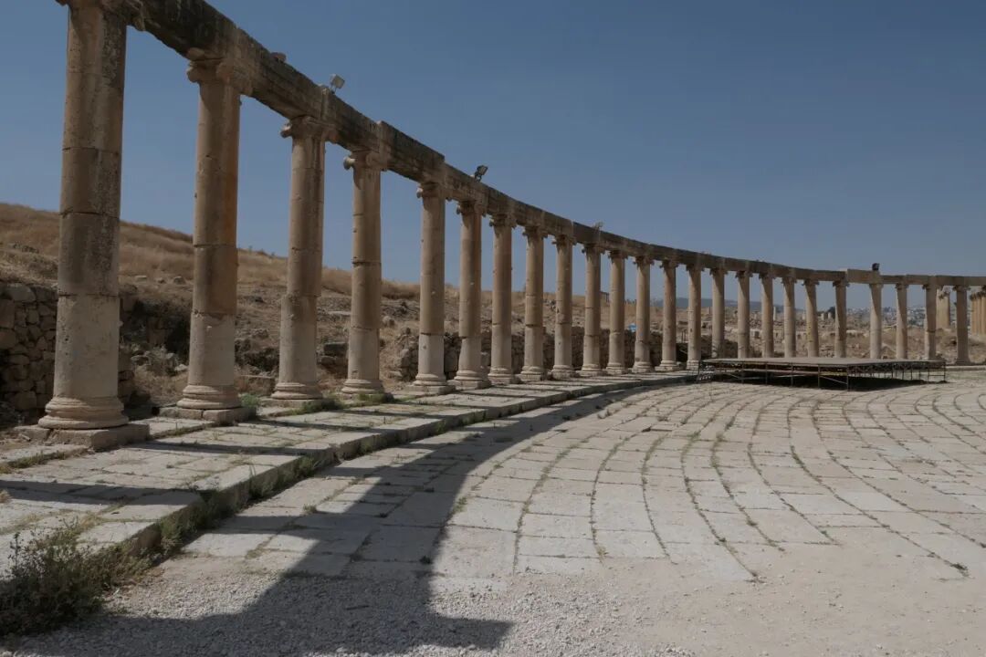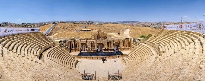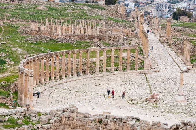 杰拉什古城(首都安曼旁)是世界上保存最完好、规模最大的古罗马城市遗址之一,也称“中东的庞贝古城”、“罗马外的罗马”,它是西元前64年时庞贝在此原城区基础上建成了古罗马十大重要城市之一,后因拜占庭兴起与波斯人入侵,以及商道变迁而逐渐衰弱竟淹没在黄沙中。1806年杰拉什才被德国人重新考古发现。