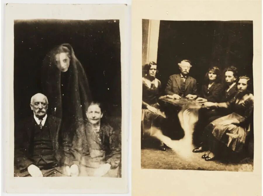 国家媒体博物馆(National Media Museum)一位策展人在古旧书屋中发现了这些照片,据说拍摄者是灵体摄影师威廉·霍普(William Hope)。这一技术又被称为“灵体摄影”,据传自20世纪初,人们就开始令鬼魂显现在照片上,甚至连当时的许多名人都信以为真(后被证实系伪造),如作家阿瑟·柯南·道尔爵士(Sir Arthur Conan Doyle)。