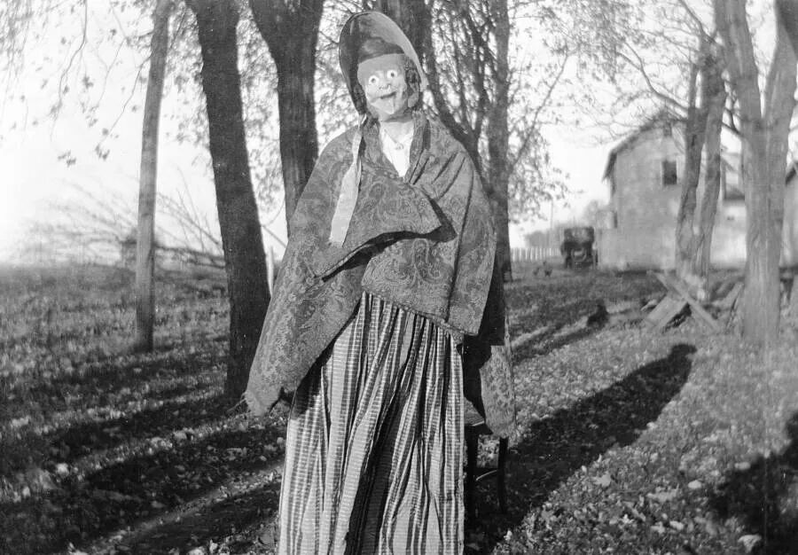 这套古旧万圣节戏服摄于1917年的新泽西迪克斯营地的农场。毋庸置疑,这比你在今年万圣节会看到的任何东西都要吓人。