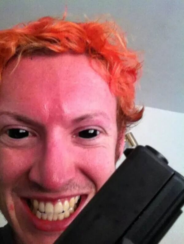 2012年7月20日深夜,詹姆斯·霍尔姆斯(James Holmes)走进科罗拉多州奥罗拉市的“世纪16”电影院,此时正在放映《蝙蝠侠:黑暗骑士崛起》(The Dark Knight Rises)。他在丢下催泪弹之后射杀人群,造成12人死亡,70多人受伤。霍尔姆斯当即被逮捕,这张自拍照和其他照片从他家中被搜出,作为呈堂证供。2015年8月7日,27岁的霍尔姆斯被判处12项终身监禁罪名。