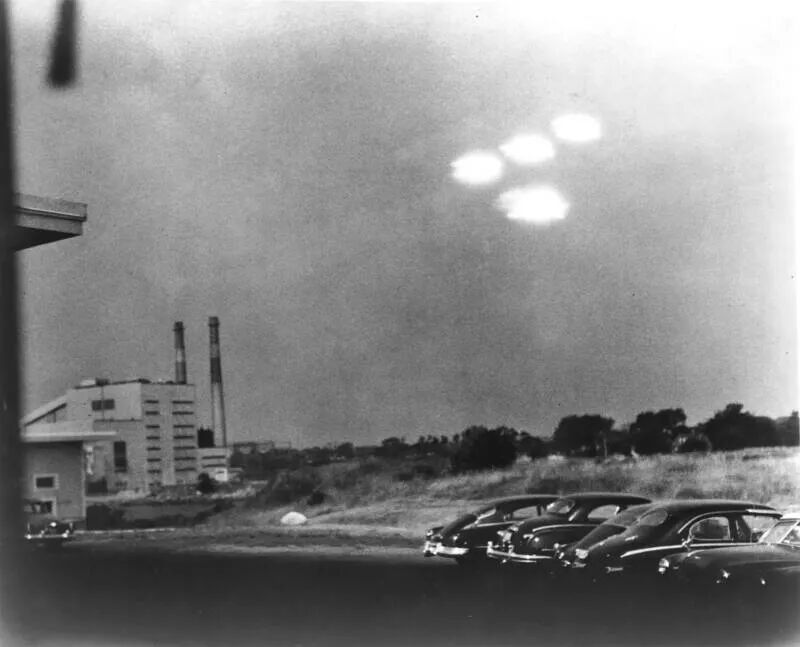 1952年8月3日,有人拍到了马萨诸塞州塞勒姆市上空的景象。这张照片并非伪造,但也没人能够做出相应解释。拍摄者是21岁的美国海岸警卫队队员谢尔·阿尔珀特(Shel Alpert),图中盘旋着四个呈某种队形的不明飞行物。这是关于UFO最为著名的照片之一,并被收藏于美国国会图书馆。