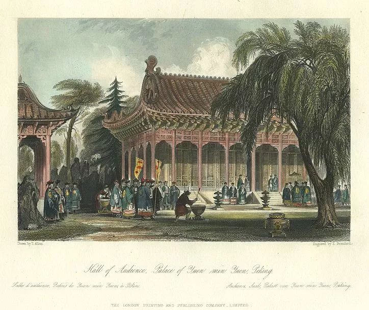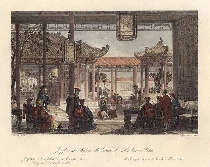 鸦片战争结束后翌年。那时的中国,还保持着大清帝国最后的体面,一派繁荣和平景象。在欧洲人眼里,中国是当时世界上唯一的“超级大国”,是一千多年来唯一能和罗马帝国相较的“中华帝国”。画册中的中国还没有被丑化、妖魔化,相反被描绘成其大无边的天堂帝国。埃及人在神庙王陵之外尚有成片贵族陵墓壁画描述斗升小民的日常生活,而中国人除了在成篇累牍的文字中臆测外,何尝有机会一窥老祖宗时代的情情种种?然而,中华风物(万古长城、西直门外、江南闺阁、秦淮古桥、湖边道观、东海妈祖);坊间百态(民工食摊、广州帽庄、天桥杂耍、江湖郎中);世间民情(中秋拜月、祭祖祀亲、收受聘礼);战争场面(虎门战役、英军营地、攻占定海):这些都经Thomas Allom的画笔,一一呈现眼前。中国的长城、运河、圆明园、景山、午门、虎丘塔、雷峰塔、报恩寺、琉璃塔、金山寺、龙舟、灯笼、闸门、捕鱼、宴请、鸦片、辫子......也是经这本画册流布了全欧洲。19世纪前期的欧洲人对中国具有敬意。于是,我们就看到了这本画册中的中国。