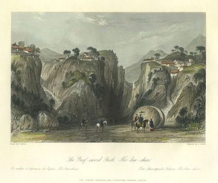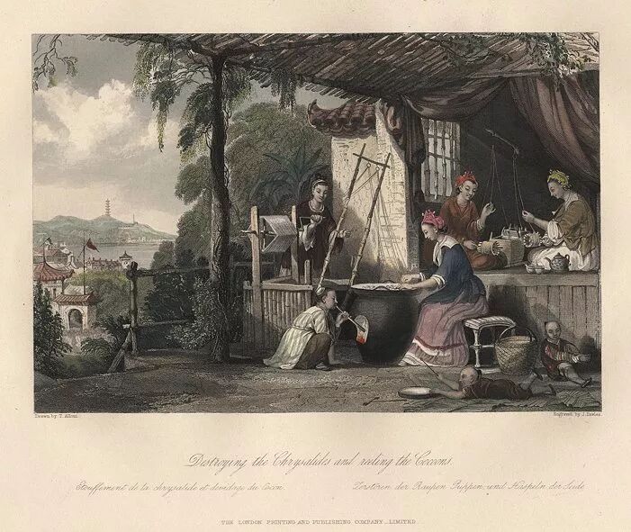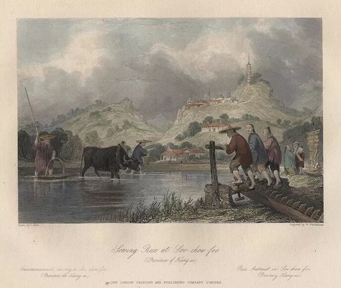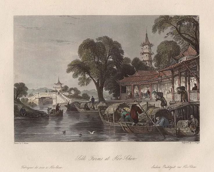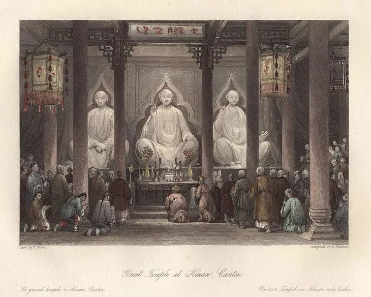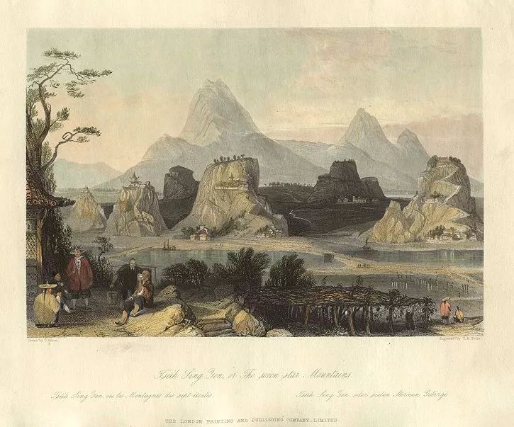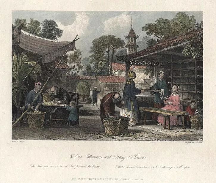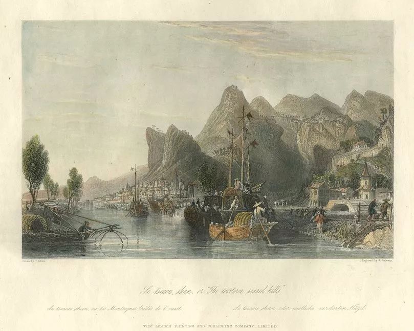当时社会不安但不动荡,民生凋敝但不破败;中国南北各个城市依然井然有序,保持着帝国的体面,大清国依然顶袭着康乾盛世的华衮。阿罗姆Thomas Allom没有到过中国,他借用别人的素描稿重新描画19世纪的中国世态风情。目前所知,他主要借用了1793年访问中国的英国使团随团画师威廉-亚历山大Willian Alexander的画稿。因不是亲身经历的,细节处的难免有所偏颇,象江南缫丝一图,几个缫丝女子的脸庞形态,活脱脱就是欧洲乡间女子的翻版;澳门妈阁庙前的两个男子,顶了日本和尚的发式,身上衣不衣、袍不袍,反倒更象印度僧侣。但瑕不掩瑜,Allom的再创作大体上是考究的,没有太大偏差。整本画册格局一律右手为整页的独幅版画,共约一百二十余幅;左手页为版画说明,附小幅的临摹原画,大部分由Willian Alexander所做。全书除了封面的烟色,其余画面全为黑白,写意苍劲,又兼版画的细腻写实,韵味十足。比利时人画笔下的《蓝莲花》已使人备感亲切,而《城市印象》给我的感觉是"回家",如此直观地细细体味关于那个逝去年代的遥远记忆,这种经历,弥足珍贵。《大清帝国城市印象:十九世纪英国铜版画》重新编缉、再版的初衷,就是想恢复历史编篡学中的“图文并茂”传统,并不是来附和时下的“图像替换”风气。欧美学者的作品都努力做到“图文并茂”。我们读西文精装本的学术书,纯哲学的除外,历史学、人类学、社会学、文学书常常是插图、插画的。反观中文著作,多半是纯粹的文字和图表,相关的图录很少。原因肯定不是作者、编者和读者不喜欢图象,而是中国近代积贫、落后,印刷和制作条件不够,读者负担不起,才因陋就简,不得已也。以十九世纪“大英帝国”出版界为例,印刷出版繁荣,伦敦书商找人创作了很多精美的版画,放在书籍、杂志和报刊上。关于中国的消息,英语世界的读者,愿意读理雅各《中国经典》的人究竟不多,但是十九世纪西方人关于中国的知识如此丰富,又是怎样得到的呢?原来,大部分人是在阿罗姆(Thomas Allom, 1804-1872)这套版画作品中了解中国的。中国的长城、运河、圆明园、景山、午门、虎丘塔、雷峰塔、报恩寺、琉璃塔、金山寺、龙舟、灯笼、闸门、捕鱼、宴请、鸦片、辫子……,都是从这本画册流布全欧洲的。正是这种事实,构成了文化传播中的“图文并茂”的传统。对于这传统,我们要尊重,要利用。阿罗姆的版画里,蕴藏着明清帝国的历史。欧洲人眼中的中华盛世,从收在画册里的120多幅精美作品中一目了然。阿罗姆没有到过中国,他是英国皇家建筑师协会的创建人,画得一手好风景。他收集访华画家,如荷兰人尼霍夫、英国人威廉.亚力山大、钱纳利、法国人波絮埃等人画作,把不同风格和题材的原画,再创作为自己风格的水彩画。他的画作,配上了历史学家赖特的文字说明,1843年由伦敦“费塞尔公司”(Peter Jackson, Late Fisher, Son and Co.London)出版。阿罗姆的画卷发行后,迅速成为英国和欧洲最有名的图画本中国历史教科书。长城和运河,现在已经成为中华民族的骄傲。实在不记得在明末尼霍夫、清初亚历山大到中国访问之前,是不是有中国的山水画家画过“万里长城”和“大运河”。换句话说:当代中国人引以为自豪的两大民族象征,还是外国人帮我们画了下来,宣传出去。当他们在欧洲大惊小怪地称道“世界第八奇迹”的时候,中国人还在一座接一座地拆毁着自己的城墙,一次接一次地扒开运河。最后,还是“外来的和尚会念经”,外国人口口声声的“运河”、“长城”,最终让国人认识到断壁残垣乃是“国之瑰宝”。中华文明在今天世界上确立的形象,并不是我们的自画像。“不识庐山真面目,只缘身在此山中”,今天我们描述自己的文明,还必须借用欧洲人的描绘。我从不认为外来者的这份先见先描就是西方人的霸道,或曰“西方中心主义”的倨傲。这完全是在中国人还没有走向世界,而世界已经先走向中国的状况下自然形成的。外来者一定要来看,一定会有发现。他们有独到的眼光,但无所谓歧视和歪曲。相反,阿罗姆画作中的中国,是广角镜里更加世界化了的中国,虽然中国刚刚在中英鸦片战争中被打败,但阿罗姆画册里的中国并不是一个妖魔化的丑陋国度。战后,英国人还在继续十八、十九世纪赞美中国文化的风气。早在1793年,马嘎尔尼使团带着画师亚历山大到访中国的时候,他们只看到了一个“康乾盛世”的尾巴。但是,花掉国王大量钱财,却空手而归的使臣们,在报告和画作里甚至不敢暴露在长城内外,运河沿线看到的混乱和贫困。因为英国人仍然把中国看作是遍地白银,人人绸缎,天天看戏的国度。英国商人都在等着和中国通商,说中国的坏话,岂非得罪舆论。画册中还是有一些中国的负面形象,但不是故意的丑化。嘉道时期,鸦片烟雾缭绕全中国,然而没有见过当时国人的“鸦片吸食图”。阿罗姆的作品中就有一幅写实笔调的广式鸦片烟馆图。现在研究鸦片问题的学者,如获至宝,放在专著中,仔细考核。中国当代学者严重地忽视着图像中所包涵的丰富文化信息,历史学家尤其如此。张隆溪教授曾在他香港九龙塘家中,指着他收藏的阿罗姆的原画说:现在很少有人到杨柳青、桃花坞年画里查一查当年风俗,把生活细节和人物形象弄仔细些,结果屏幕上的清宫戏慌了腔,走了型。学者们研究“中国近代史”,都会发现西方对东方的“妖魔