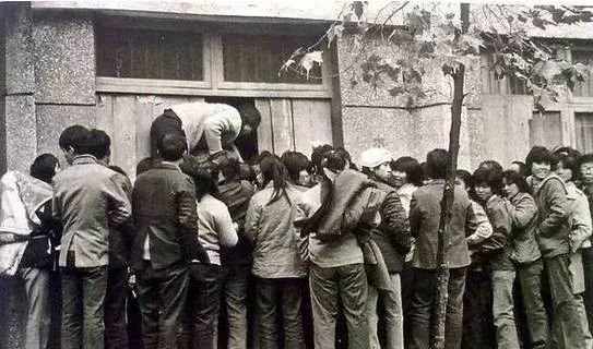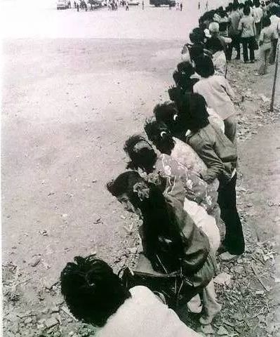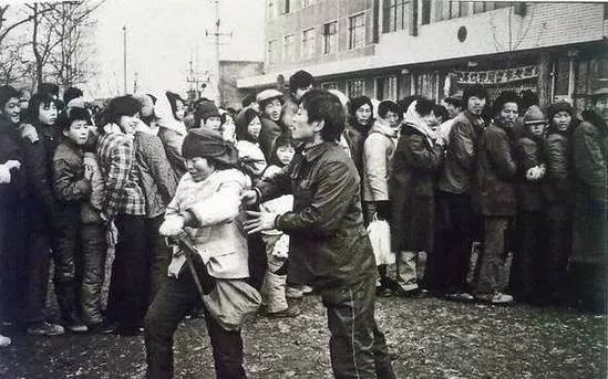 1989年,陕西临潼,一个企图插队买彩票的农妇被推了出来。