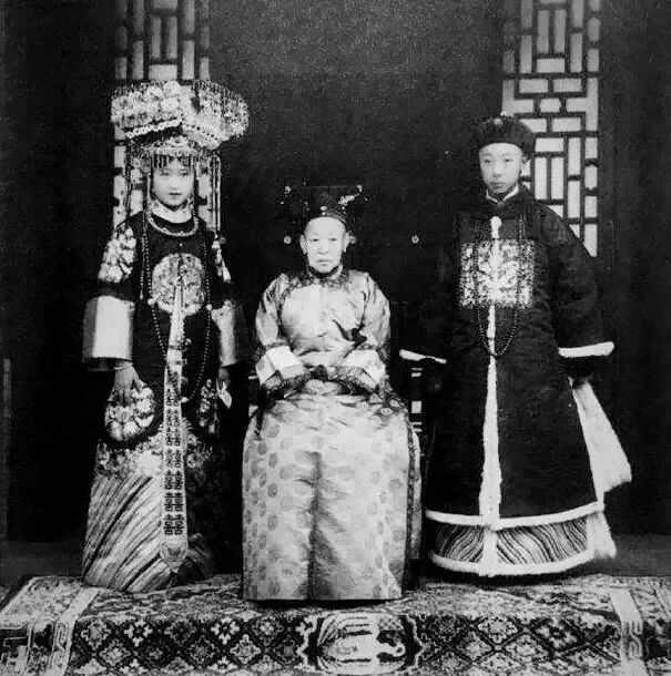 瑾妃(中间)与外甥女唐怡莹、溥仪弟弟溥杰合影