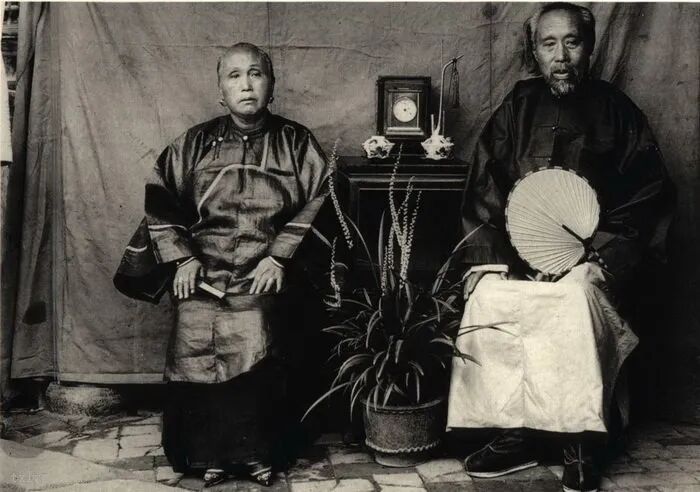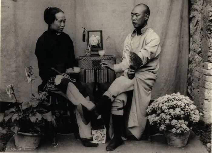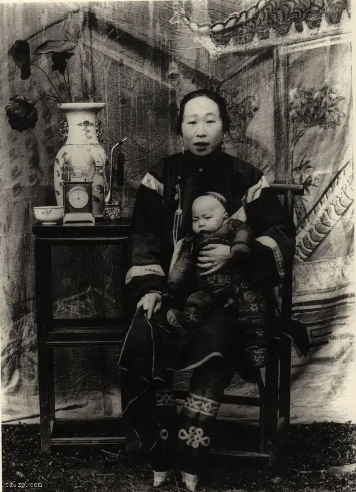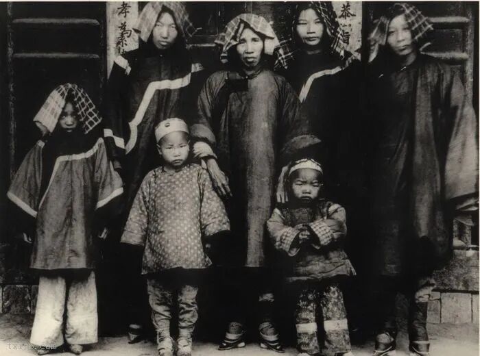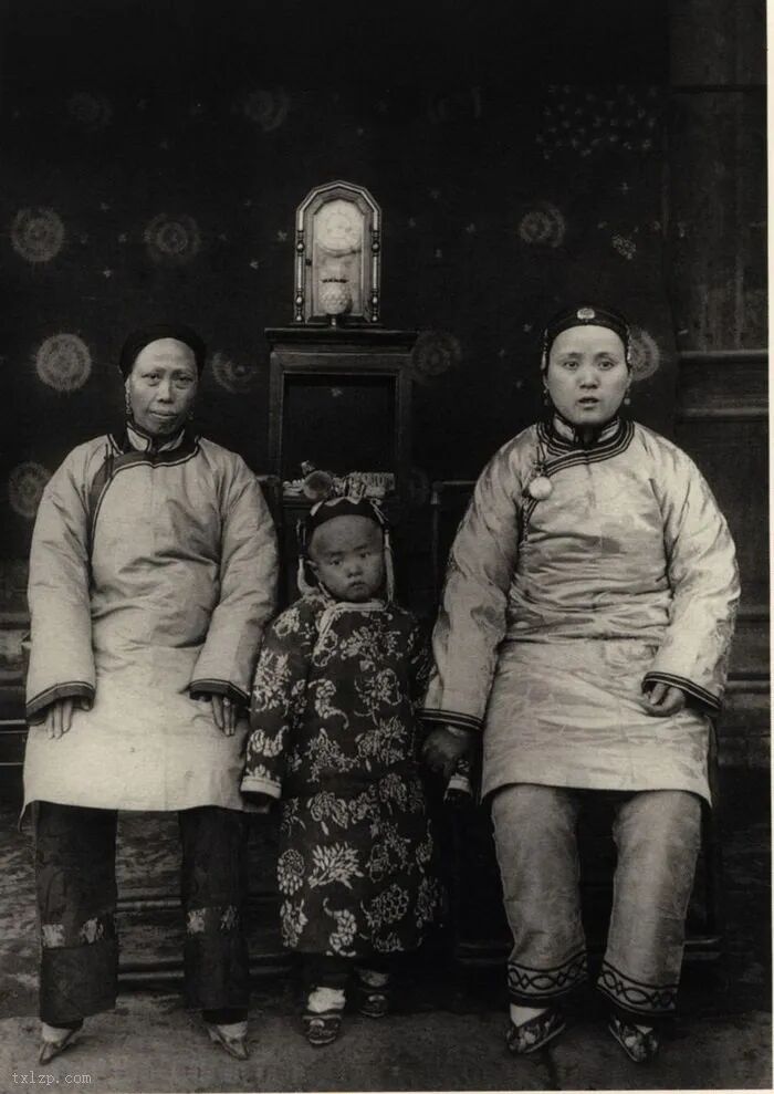 99、富裕的一家三口,其中母亲有着一双“三寸金莲”。