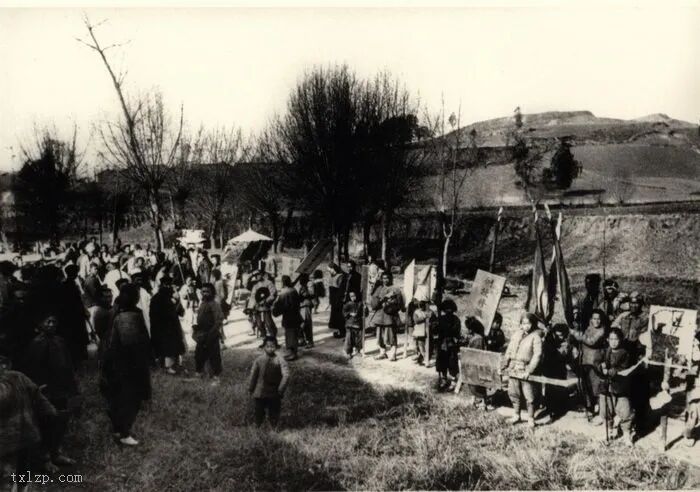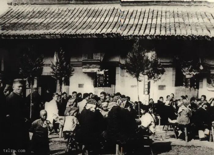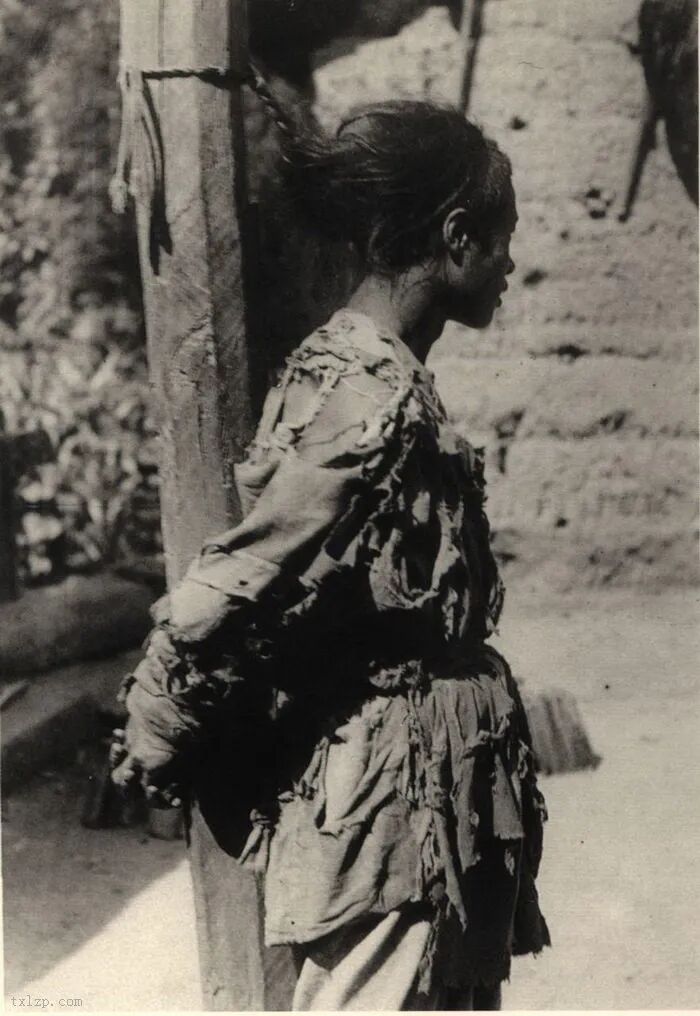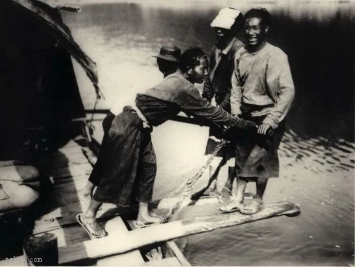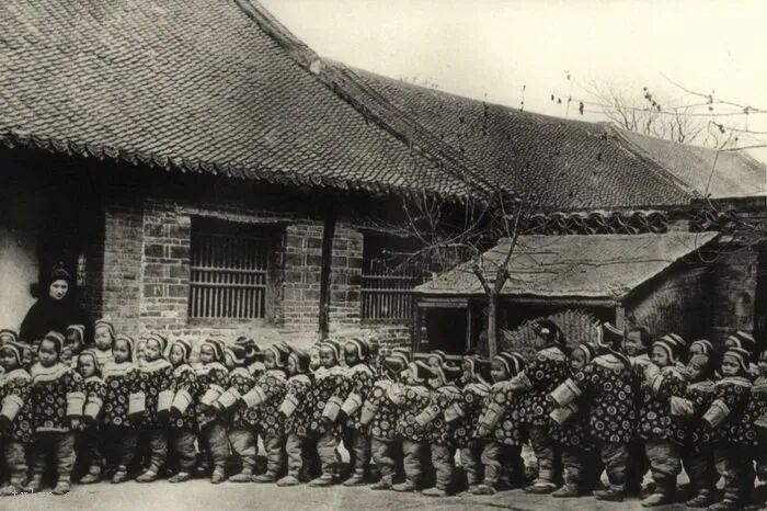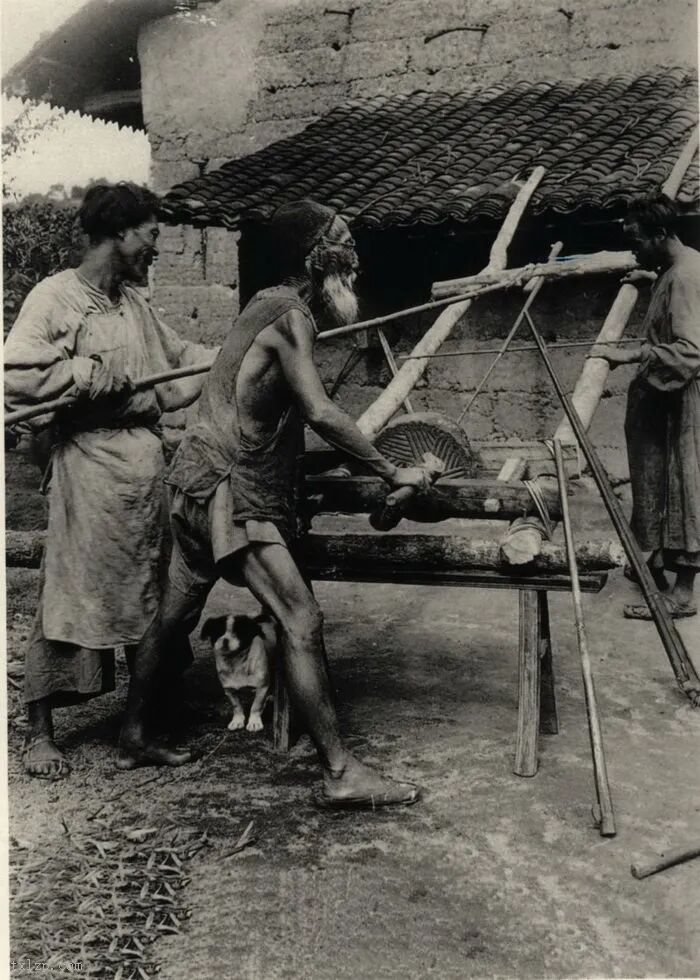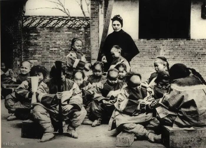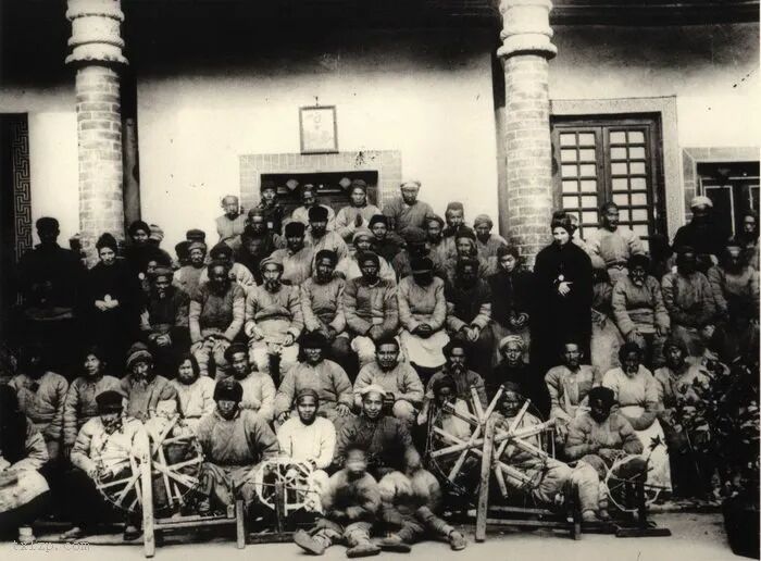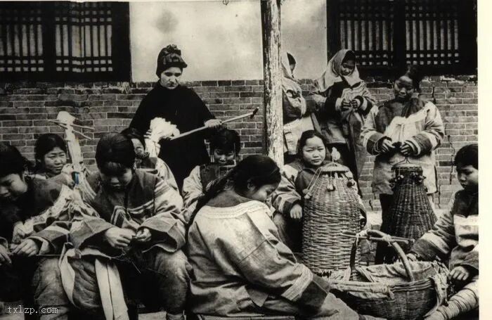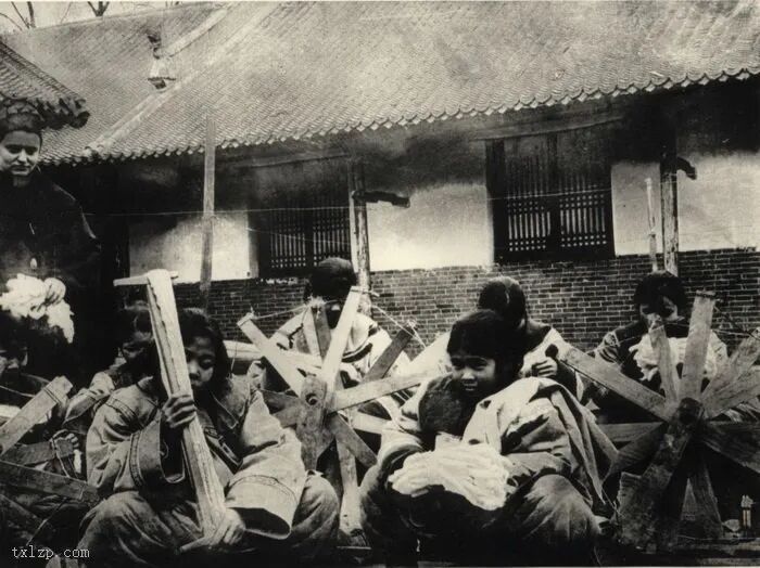 50、汉中的孤儿正在纺纱。