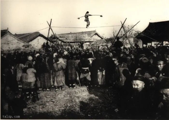 83、一个流动杂技团在表演,适逢乡村喜庆。