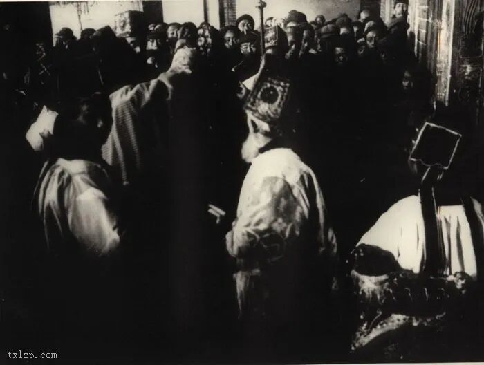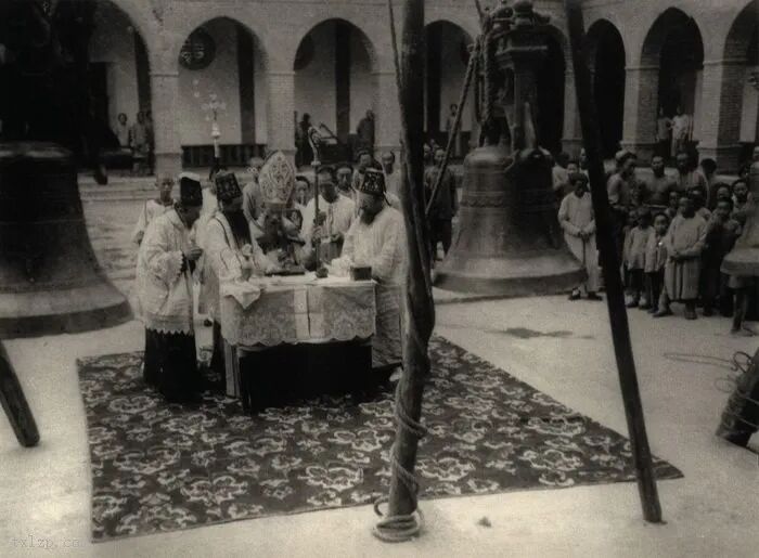 129、汉中代牧区拔士林主教(一八九五——xxxx年在任)正在为主教座堂的大钟祝圣。