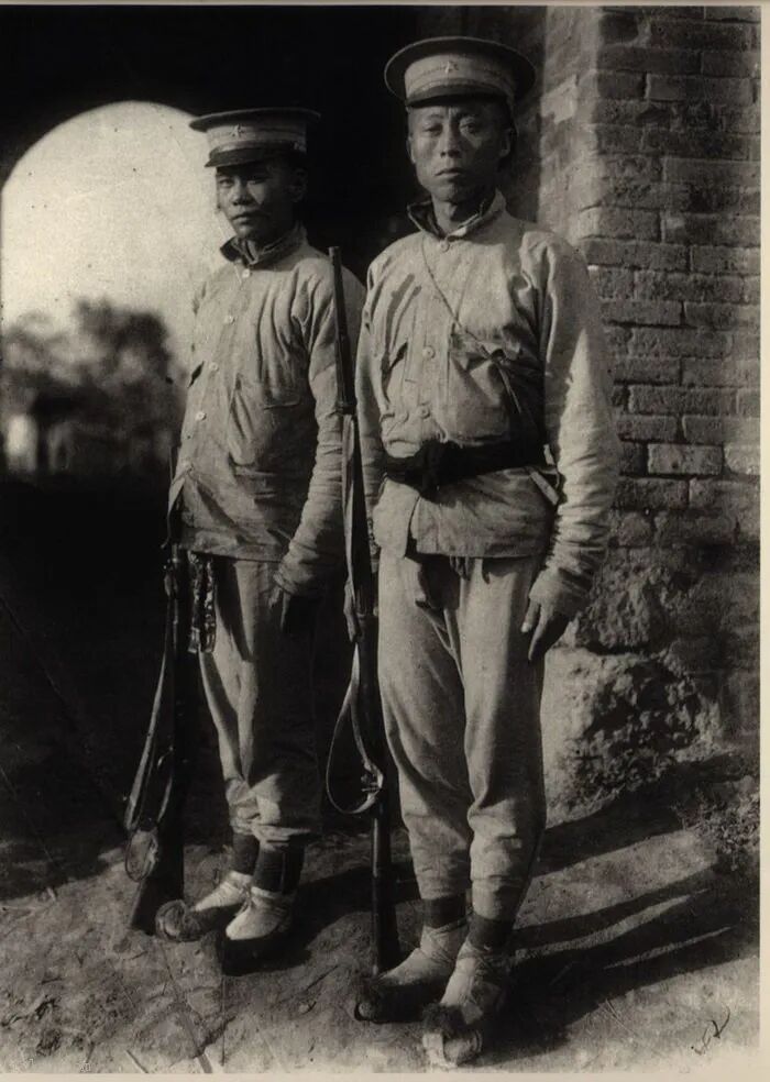 64、两名穿着简便军服的民初士兵。