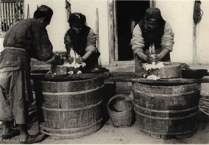 54、农夫把莲藕磨成藕粉。