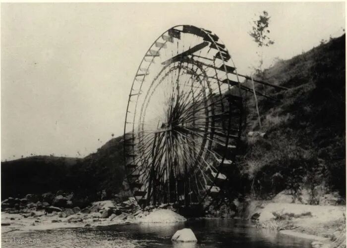 32、汉江岸边用以引水灌溉的巨轮水车。