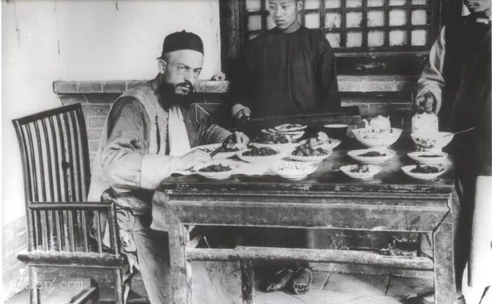 4、南怀谦神父以刀叉享用中式菜肴。