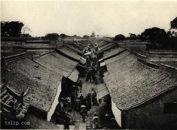 11、汉中一条繁忙街道。远处鼓楼上的鼓声用以通告时间。