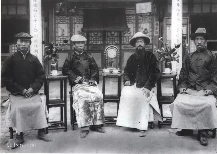 5、南怀谦神父与合作者留影。图中显示中西文化相互影响:中国人头戴西式礼帽,南神父却身穿中式长衫。