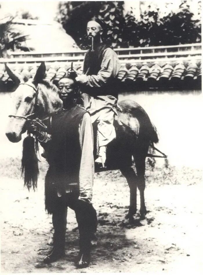 3、马背上上的南怀谦神父。旁立者为马夫。