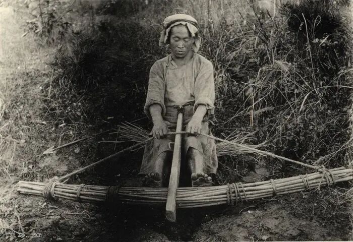 48、以稻草编制草鞋。